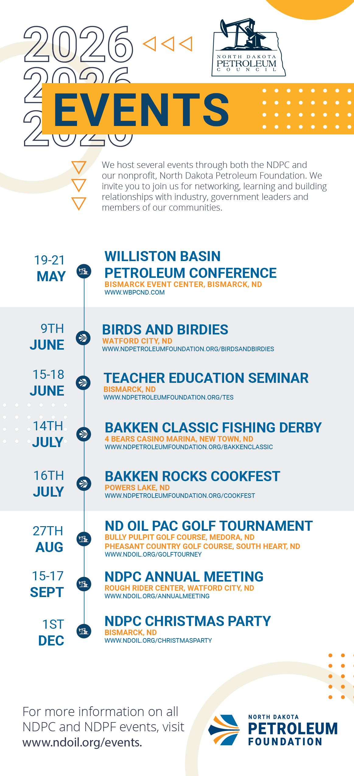 The North Dakota Petroleum Council and North Dakota Petroleum Foundation schedules are set for 2026.